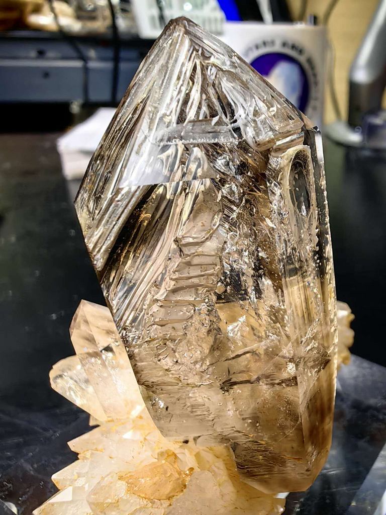 • Components: Smokey Quartz with intricate fossil-like structures.