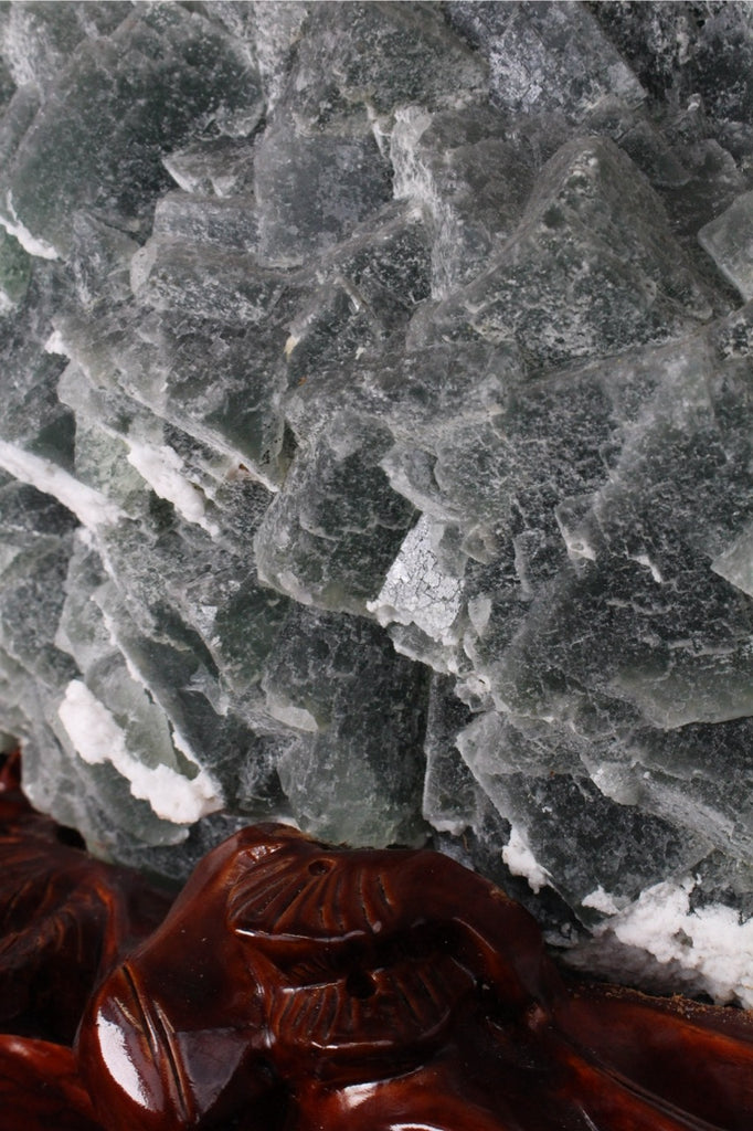 Green And White Fluorite With Wooden Base | Crystal ID 033