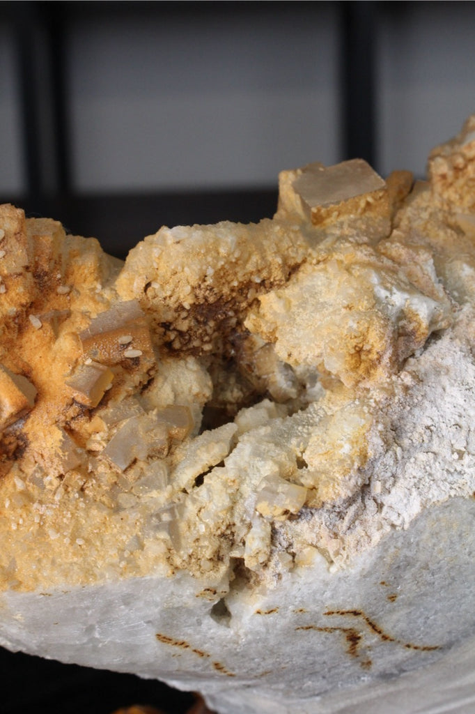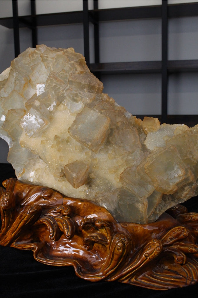 Honey Yellow Cubic Fluorite With Wooden Base | Crystal ID 050