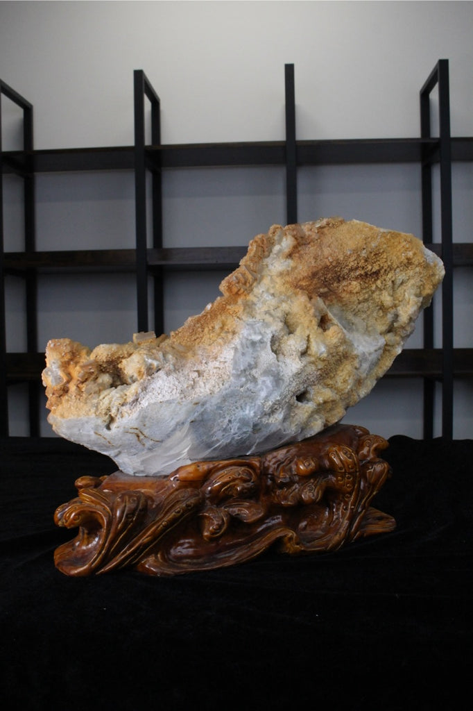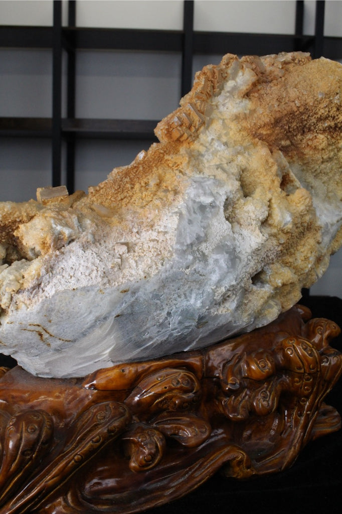 The Honey Yellow Cubic Fluorite With Wooden Base is a beautiful natural crystal. Base is believed to promote overall well-being and energetic harmony.