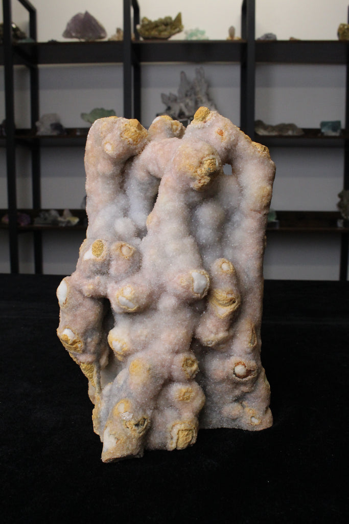 The Agate Specimen is a striking natural mineral celebrated for its layered patterns and grounding energy. Agate can be found in many regions worldwide, often forming within volcanic rock. This crystal is believed to promote emotional balance, stability, and calm, making it a supportive stone for grounding and centering the mind.